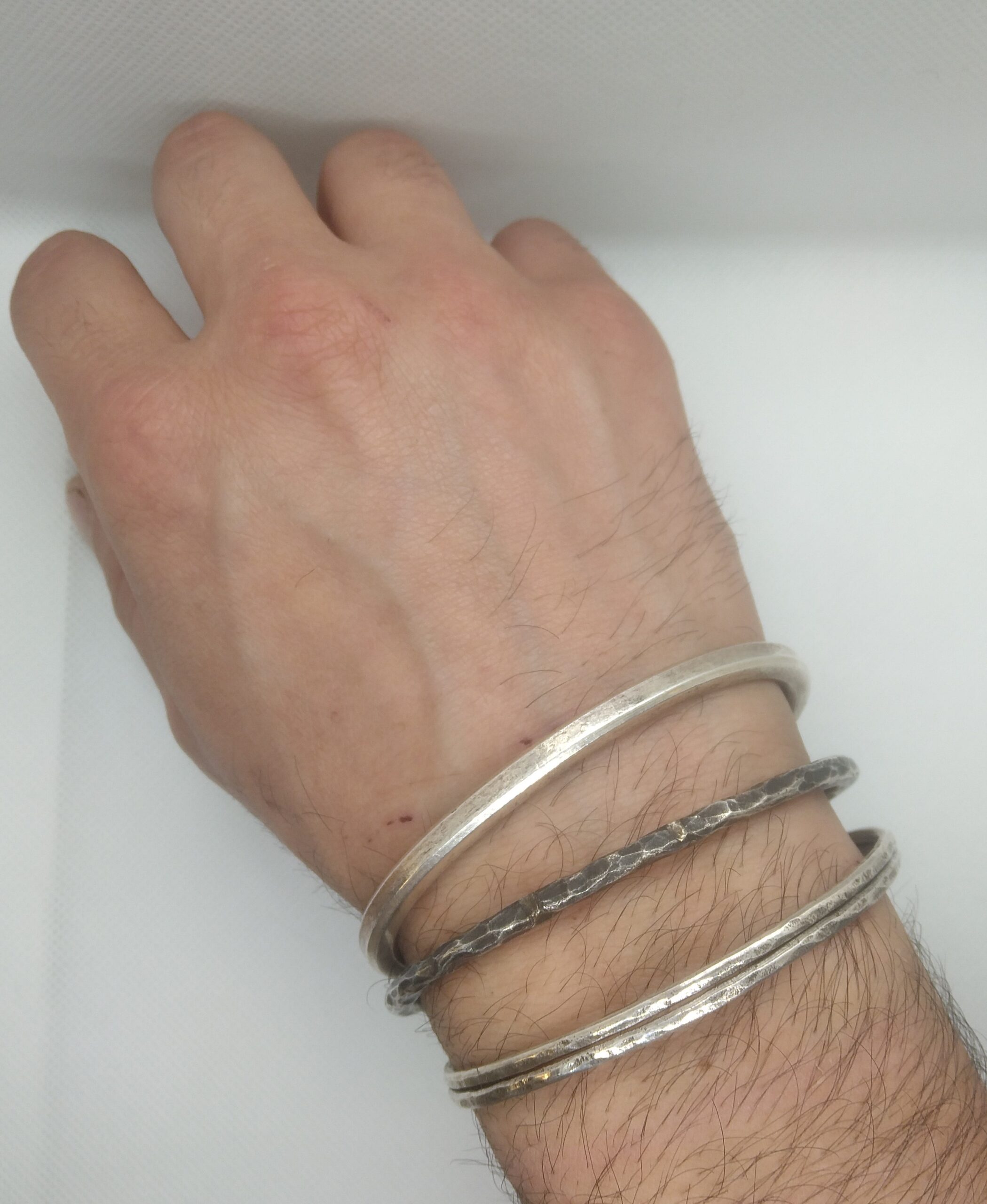 Slim hammered, a solid sterling silver 925 bangle is all handmade with slim layer of solid gauge silver stock and excellent, hammered, oxidized finishing & polished surface with a very nice solid feel. Adjustable made for both man & women